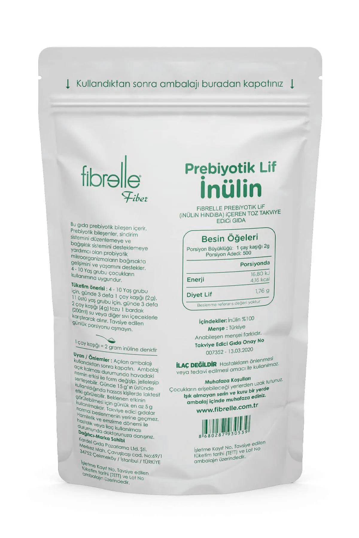 Fibrelle İnülin Prebiyotik Lif - Hindibağ (1 Kg Ambalaj) INULIN